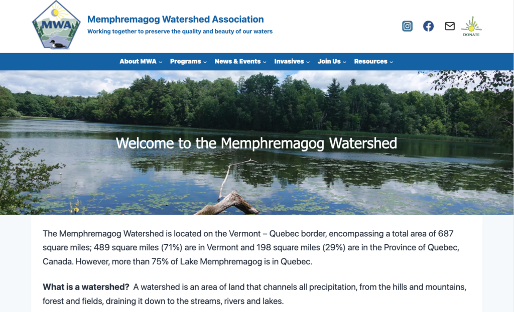 The Memphremagog Watershed Association was founded in 2007 as an organization dedicated to the preservation of the environment and natural beauty of the Memphremagog watershed and to ensure its protection for generations to come. Memphremagog Watershed Association is a 501c3 Association.