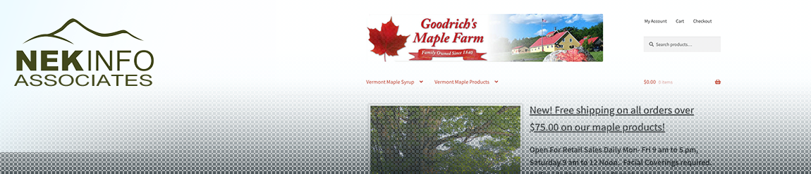 Goodrich’s Maple Farm. From our Trees to Your Table! Pure Maple Syrup ~ Taste the Difference! All Natural, No Preservatives, No Additives ~ Fat-Free, Gluten-Free, High in Antioxidants & Minerals. Wonderful for baking and in place of other sweeteners. A Healthy, Wholesome food.